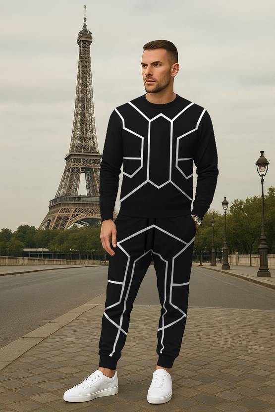 KELONBRO Effortlessly combine comfort and street-ready style with this round neck line-printed jogger suit. Designed for modern movement and clean aesthetics, this coordinated two-piece set features subtle line graphics that add a dynamic edge without overpowering the