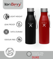 KenBerry Single Wall Stainless Steel Alpha Duke 1 Litre Water Bottle Combo 1000 ml Steel Bottle (Pack of 2, Black, Maroon)