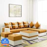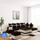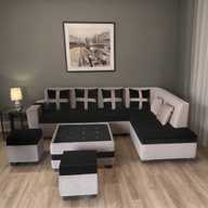 Kendalwood Furniture 8 Seater Sofa, 2 Ottoman, 6 pillow With Coffee Table Fabric 3 + 2 + 2 + 1 Sofa Set (Brown & Cream, Pre-assembled)