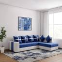 Kendalwood Furniture L Shape Fabric Sofa For Living Room | Sofa For Home & Office Fabric 6 Seater Sofa (Finish Color - Blue & White, Pre-assembled)