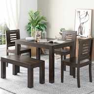 Kendalwood Furniture Premium Dining Room Furniture Wooden Dining Table with 3 Chairs & 1 Bench Solid Wood 4 Seater Dining Set (Finish Color -Walnut Finish, DIY(Do-It-Yourself))