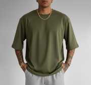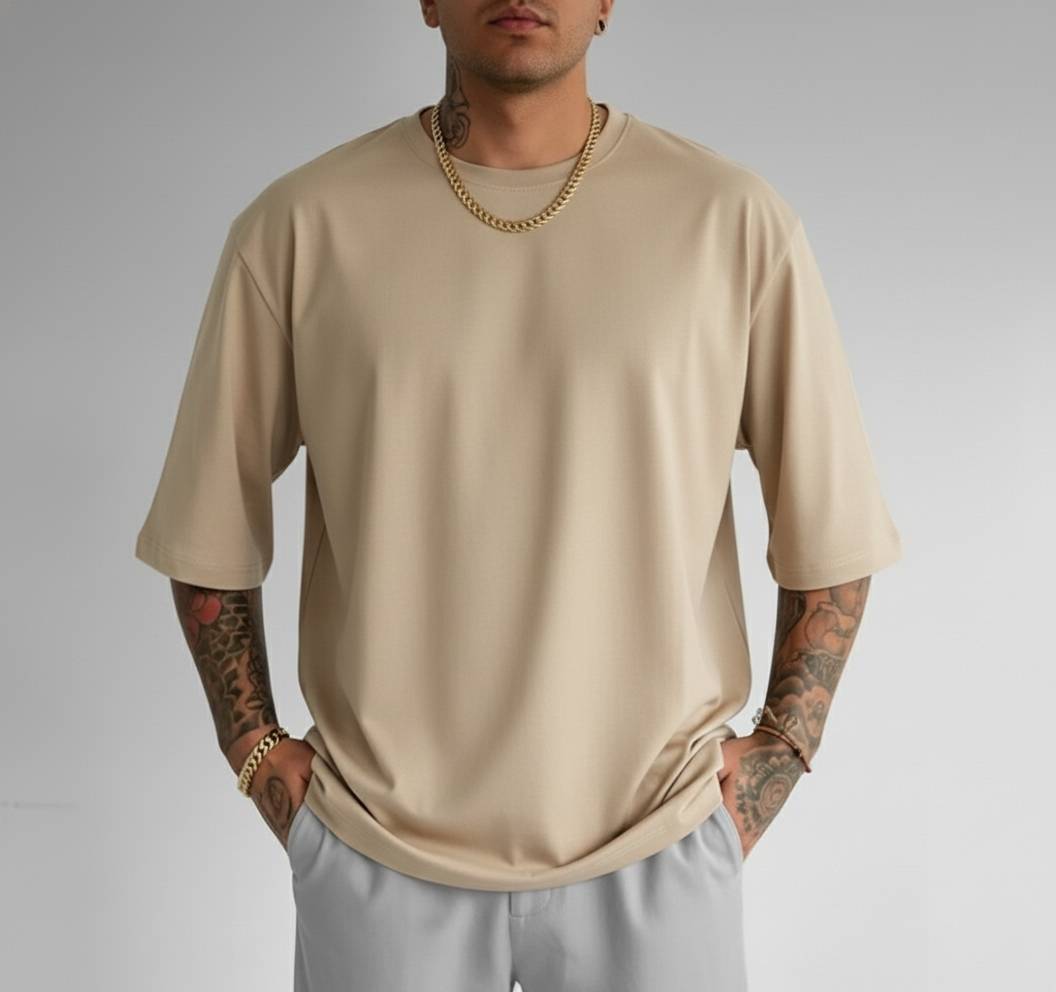 Men Solid Round Neck Pure Cotton Beige T-Shirt