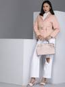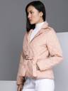 Pink checked self design tailored jacket with shoulder tabs has a lapel collar Comes with a Belt 2 pockets has a button closure long sleeves straight hemline polyester lining