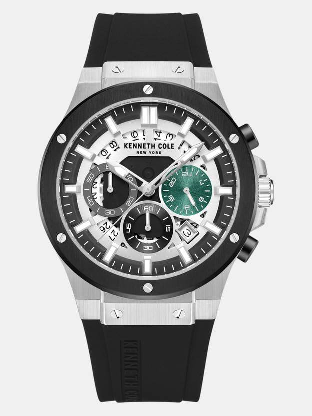 Kenneth Cole Kenneth Cole Chronograph Silver Dial Black Silicone Strap Analog Watch - For Men
