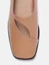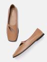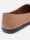 A pair of square toe brown slip-on shoesHas regular stylingSlip-on closureLeather upperCushioned footbedTextured and patterned outsole