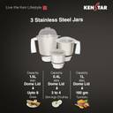 Kenstar by Kenstar Klove 750 W Mixer Grinder (KMKLO75G3SR1-DEK/KLOVE | 3 Jars | Multicolor)