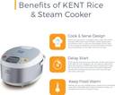 KENT 16012 Electric Rice Cooker with Steaming Feature (1.8 L, Grey)