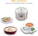 This rice cooker comes with a non-stick coated aluminium pot that will ensure your food is cooked well.