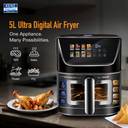 KENT Ultra Digital Air Fryer 5L | 1500W | Bake, Grill & Roast | Up to 80% Less Oil Usage |8 Preset Menu|Rapid Heat Circulation |Digital Display & Touch Control Panel |Glass Window with in built Light Air Fryer (5 L)