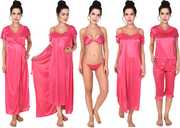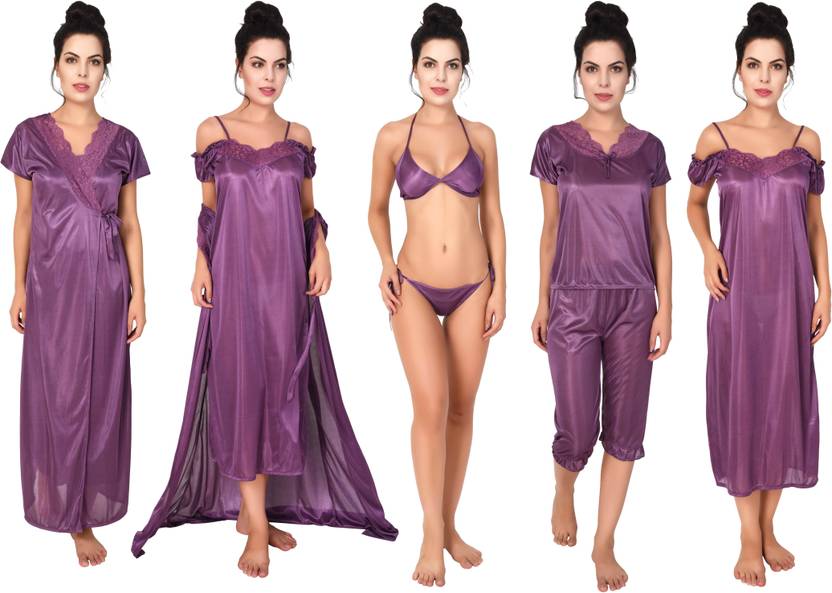 1 Bra, 1 Capri, 1 Wrap Gown, 1 Full Nighty, 1 Top, 1 Panty