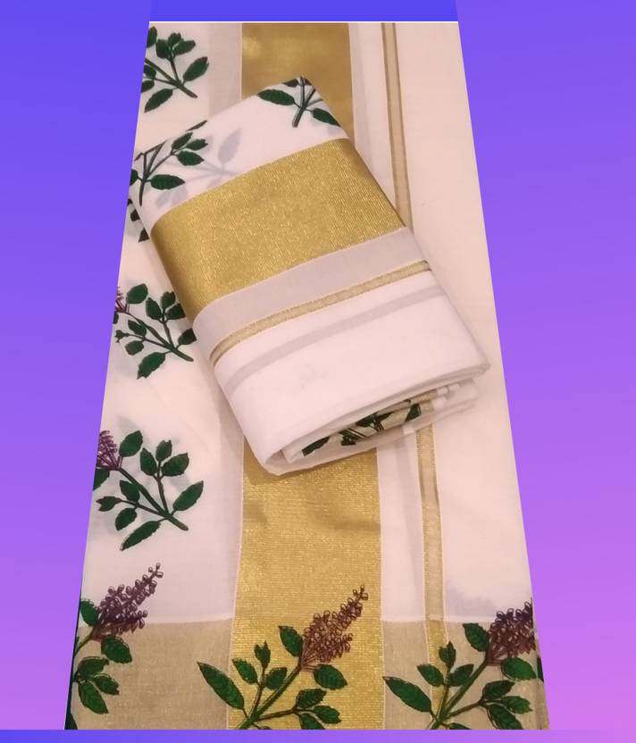 This Cotton Setmund is with Cotton Linen. The Natural Fibers Make the Linen Soft and Cozy, Which is Used to Makes the Wearer Feel More Comfortable in All Season include Summer. Grab This Beautiful Drape for Any Occasion to Steal The Limelight. This Elegant Drape is called as Kerala Pure Cotton Kuthampully Traditonal Wear Setmundu/ Half and half Saree /mundum nariyathum .