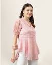 This outfit is Manufactured by the brand KERI PERRY. It is made from Georgette and finished in Pale Pink color. It Looks very beautiful and attractive. It's the Perfect for party wear that will lend effortless to Your Style. Product colour may slightly vary due to photographic lighting sources or your monitor settings.