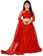 KESHAVI CREATION Girls Lehenga Choli Party Wear Embellished Lehenga, Choli and Dupatta Set (Pink, Pack of 1)