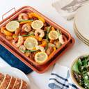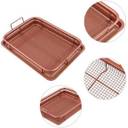 Then nest the copper baking tray underneath to catch crumbs and drips and save your oven from building up gunk.