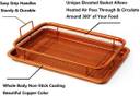 Get crispy bacon, crunchy chicken, golden-brown grilled cheese sandwiches, and even homemade potato chips! Mesh crisper basket design promotes 360 degree airflow circulation, so even conventional ovens can operate with convection technology and air fry any food.