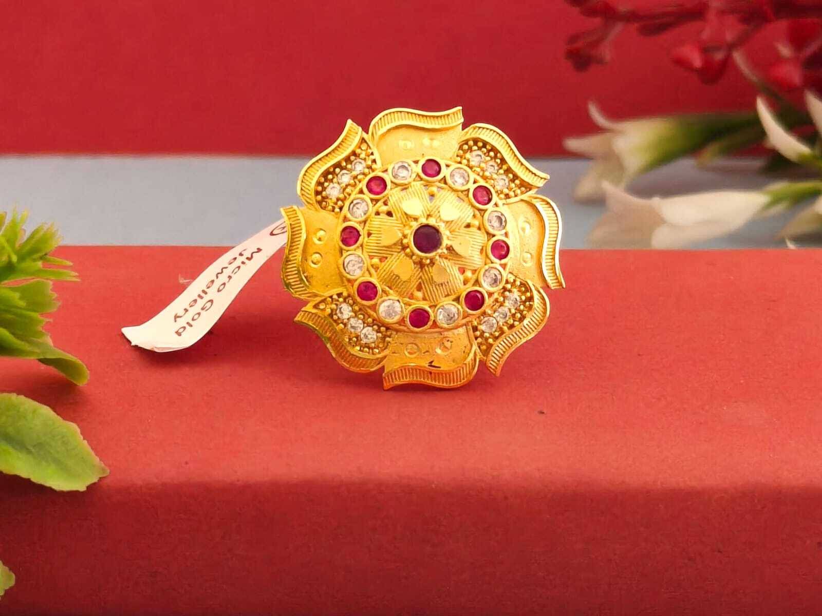 Kesvi Brass Cubic Zirconia, Ruby Gold Plated Ring