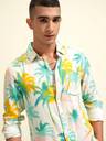 Ketch Men Cream Regular Collar Full Slv Aop Shirt