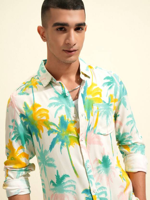 Men Slim Fit Printed Cut Away Collar Casual Shirt