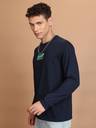KETCH Printed Men Round Neck Dark Blue T-Shirt