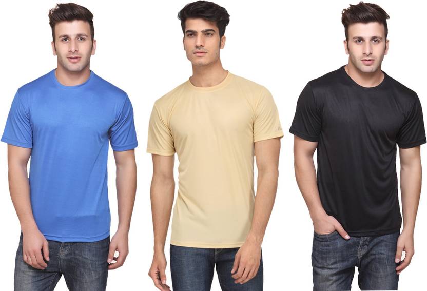 KETEX Pack of 3 Men Solid Round Neck Polyester Multicolor T-Shirt