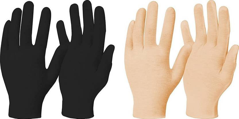 Self Design Protective Men & Women Gloves Pack Of 2 Beige_Black