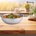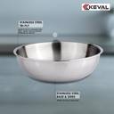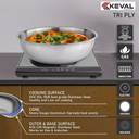 Keval TriPly Stainless Steel 22cm Tasra/Tasla without Lid is the perfect addition to any kitchen, offering superior performance and health-conscious cooking. Made from high-quality stainless steel, this cookware is designed for durability, long-lasting shine, and rust resistance. Its advanced Tri-Ply Construction ensures excellent heat retention and uniform distribution, allowing for even cooking and faster heating. Whether you're using an induction stove, gas, or electric cooktop, the Induction Bottom ensures compatibility and efficiency. This versatile pan promotes healthier cooking with less oil, helping you prepare delicious meals with minimal fat. It's also dishwasher safe, making cleanup effortless. The food-grade stainless steel guarantees safe cooking without harmful chemicals, and the stackable design ensures easy storage. With its combination of practicality, performance, and style, the Bergner Argent Tasra/Tasla is an essential piece for every home chef