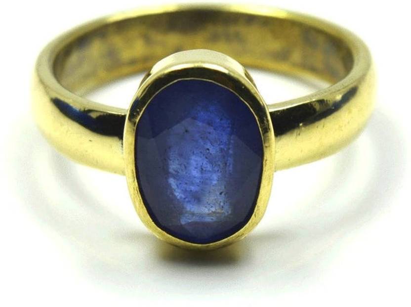 Natural Certified Blue Sapphire/Neelam Panchdhatu Copper Rashi Ratan 4.8 Ct./5.25 Ratti Astrological Purpose Ring For Unisex by KEVAT GEMS.Blue Sapphire or Neelam is left open from the back side for rays to pass through and reach finger properly. High quality making in our own state-of-the-art manufacturing unit gives this ring a beautiful look. Gemstone certified by a Well reputed laboratory. Pure Panchdhatu Ring with 22 Karat gold plating . This panchdhatu ring is made up with 5 Dhatus or metals namely Gold, Silver,Copper,Zinc and Iron.This fashionable flat ring band is dainty and elegant. While it is simple in design, you can personalize yours with inspirational messages, custom coordinates, name, or initials, for the truly unique graduation, birthday, anniversary, Christmas, and friendship gift. Its sleek design also makes it versatile and playful, a must-have accessory for every trendsetter.