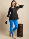 Buy Pure Cotton Lycra Leggings and look elegant and feel the comfort of stretchable cotton stuff.Cotton Lycra Leggings can be working as casual wear, Party wear and at formal occassions Free Size - best fit to the waist size between 26 inches to 36 inches.Fabric: super fine Cotton Lycra 190-250 GSM (22% lycra and 78%Cotton).Leggings Length -40 Inches, Inseam Length 13 inches,Hip Size 24 inches to 36 inches.