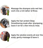 Boasting an easy application, you can achieve optimal results by using this shampoo. You need to massage this shampoo onto your wet hair, work it into a rich lather, and rinse. For enhanced benefits, you can follow up with the hair protein deep smoothening mask, leaving it on for a few minutes before rinsing. You can complete the regimen by applying the solution evenly to your scalp, and gently massaging it in for a thorough treatment.