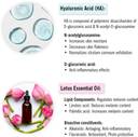 Essential oils and natural extracts like Lotus and Aloe Vera Gel fortify the skin’s barrier, providing antioxidants, fatty acids, and minerals for soothing and protection. The formula promotes lipid regeneration, guarding against environmental stressors and enhancing skin’s resilience.