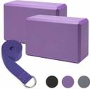 keycraze Bricks and Strap Set 2 Packs Eco Friendly Non Toxic with Belt Yoga Blocks (Purple Pack of 3)