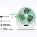 ? ?Oscillating Desk Fan?To accommodate your needs, the table fan features 4 speeds for optimal airflow and comfort. Press the button on the base to change the speed level as you want. And it will show the battery capacity while working.