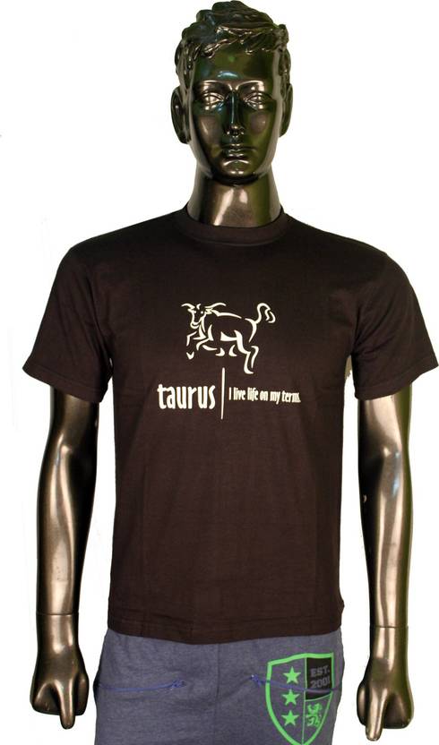 Men Printed Round Neck Cotton Blend Black T-Shirt