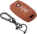 The product fits in perfectly on the key.It comes with a matching key chain.It is made up of soft and safe silicone material.It is light, durable and convenient to carry.It keeps your cars’ key from getting scratched or damaged.Please ensure that your key looks like the key shape you’ve chosen earlier, else the product will not fit your key.The listing is for a single key cover and a keychain.