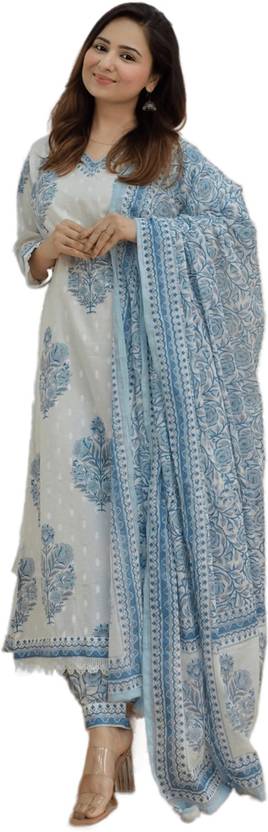 Elevate your ethnic style with the Arayna Women's Cotton Printed Floral Straight Kurta Set in a charming Light Blue hue. This exquisite set features a beautifully crafted kurta, palazzo pants, and a matching printed dupatta, making it an ideal choice for festive occasions, casual gatherings, or even semi-formal events. Make a statement at your next event with the Arayna Women's Cotton Printed Floral Straight Kurta Set. Embrace the blend of traditional and modern aesthetics, and experience both comfort and style in one stunning ensemble. Add it to your cart now and capture the essence of timeless elegance. Add it to your collection today and exude charm and elegance with every step you take. Elevate your ethnic wardrobe with the Arayna Women's Cotton Printed Floral Straight Kurta Set. Note: Colors may slightly vary due to lighting effects during photography.