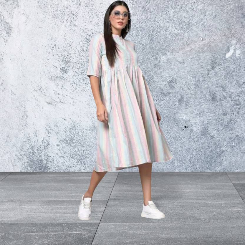 Women A-line White Knee Length Dress