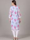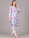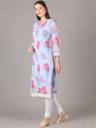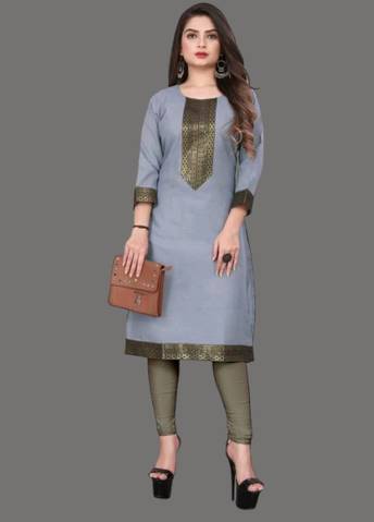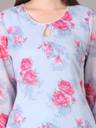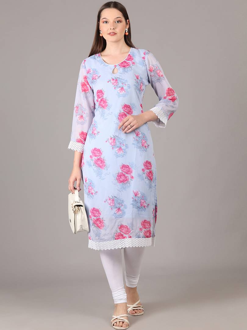 Grey Georgette Floral Print Straight Fit Kurta. Has a Keyhole Neck, Knee Length, Three Quarter Sleeve With Pure Cotton Bio wash Churidar Legging.