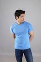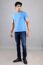 Men Solid Round Neck Cotton Blend Light Blue T-Shirt