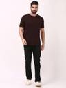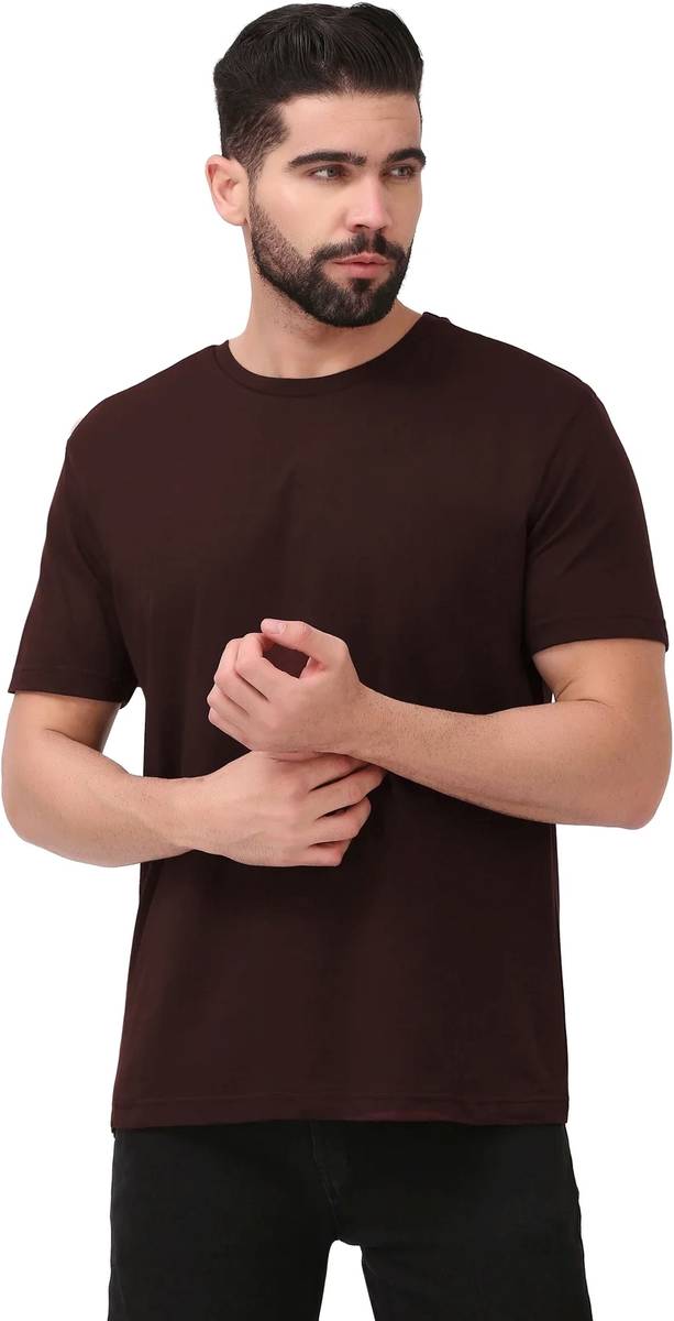 KGB Men Solid Round Neck Cotton Blend Brown T-Shirt