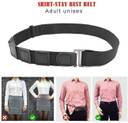 The shirt stays- belt style is a slim-profile belt designed to hold your shirt in place, similar to the way a regular belt holds up your trousers.