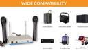 KH Duel Cordless Microphone Dual Channel VHF Rechargeable Wireless System Microphone Accessory (Black)
