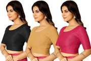 This stylish and comfortable women's readymade blouse is crafted from a premium cotton-lycra blend, offering both breathability and flexibility. Designed for modern women who value comfort without compromising on style, the stretchable fabric ensures a flattering fit across body types. Pair it with your favorite saree or ethnic ensemble for an effortlessly elegant look.