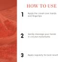 Applying this hand cream is a simple and straightforward process. Pour a suitable amount onto the palms and gently massage into the hands, covering the fingers and cuticles. Regular use results in effective outcomes, with hands feeling soft and smooth. This cream provides an easy and efficient way to maintain hand hygiene and care.