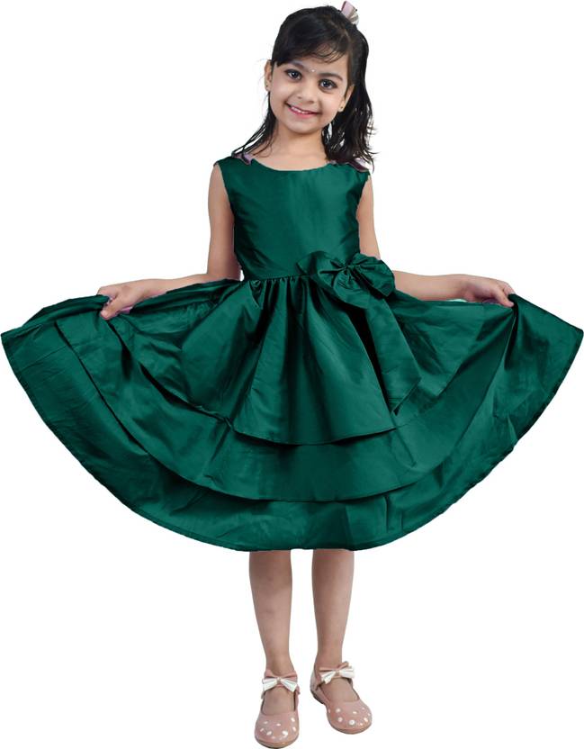 Khadka Collection Girls Midi/Knee Length Casual Dress (Green, Sleeveless)