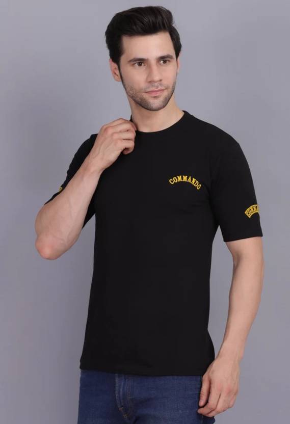 Khaita Enterprises Military Camouflage Men Round Neck Black T-Shirt