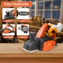 The KHAITAN KPEP82 Industrial Quality Planer is designed to meet the rigorous demands of professional woodworking. Featuring a powerful 900W motor, this planer ensures high efficiency and performance, making it ideal for both heavy-duty and intricate tasks. With a no-load speed of 16,300 RPM, it guarantees fast and smooth material removal, allowing for high-precision work. This planer boasts a cutting capacity of 82x2mm, enabling you to achieve deep and consistent cuts with every pass. Its versatile rated frequency of 50/60 Hz and voltage range of 220-240V~ make it compatible with various power sources, enhancing its usability in different environments. Weighing only 3.1 kg, the KHAITAN KPEP82 is lightweight and easy to handle, yet built with industrial-grade materials to withstand the toughest conditions. This combination of portability and durability ensures that you can work longer with less fatigue, maintaining control and accuracy throughout your project. Ideal for professionals and DIY enthusiasts alike, the KHAITAN KPEP82 Industrial Quality Plane is a reliable tool that delivers exceptional performance, precise results, and lasting value in all your woodworking endeavors.