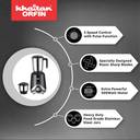 Boasting resilient construction, this mixer-grinder includes stainless steel jars that ensure durability and long-lasting performance. The nickel-coated food-grade stainless steel blades are designed for fine grinding and blending. These high-quality materials enhance its lifespan and ensure that it remains hygienic and safe for food preparation.