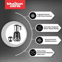 Khaitan Orfin NA 500 W Juicer Mixer Grinder (KO 271 | 2 Jars | Black)