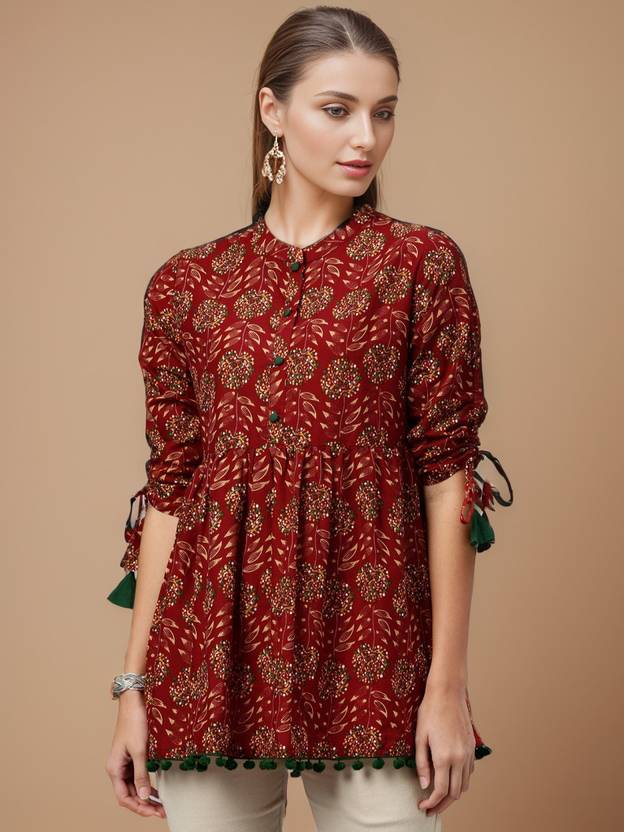 Chiraai Women Floral Print A-line Kurta (Maroon)