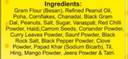• Gram Flour (Besan), Refined Peanut Oil,, Poha, Cornflakes, Chanadal, black Gram Dal, Peanuts, Salt, Sugar, Vanaspati, Red Chilli, Powder, Haldi, Papad Khar (Sodium Bicarb), Til, Hing, Mango Powder, Jeera Powder, Tatri